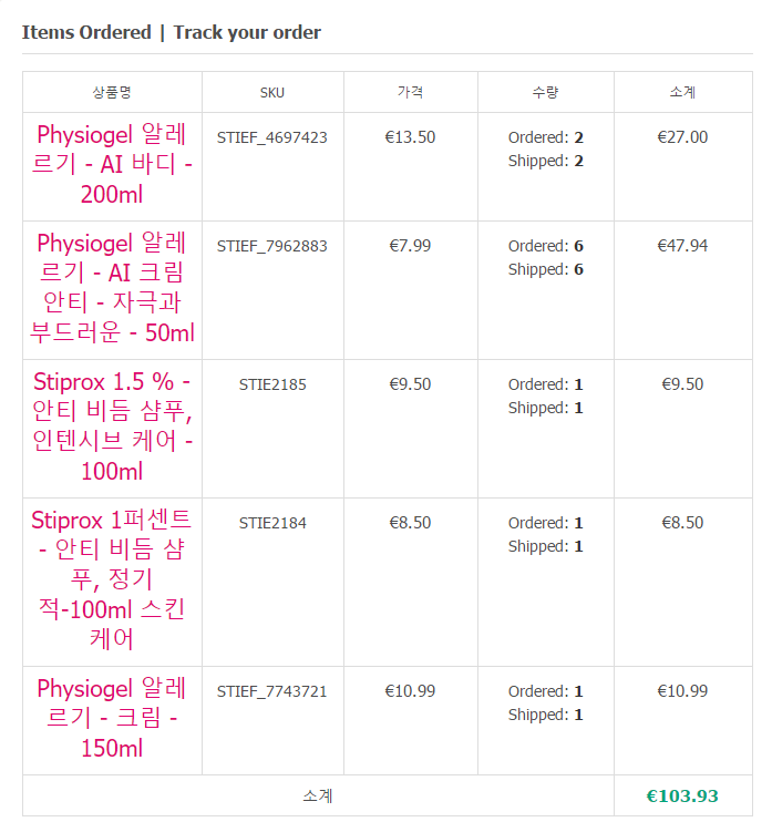 기본 10%이상 세일에 120유로이상 구매시 월드와이드 프리쉽