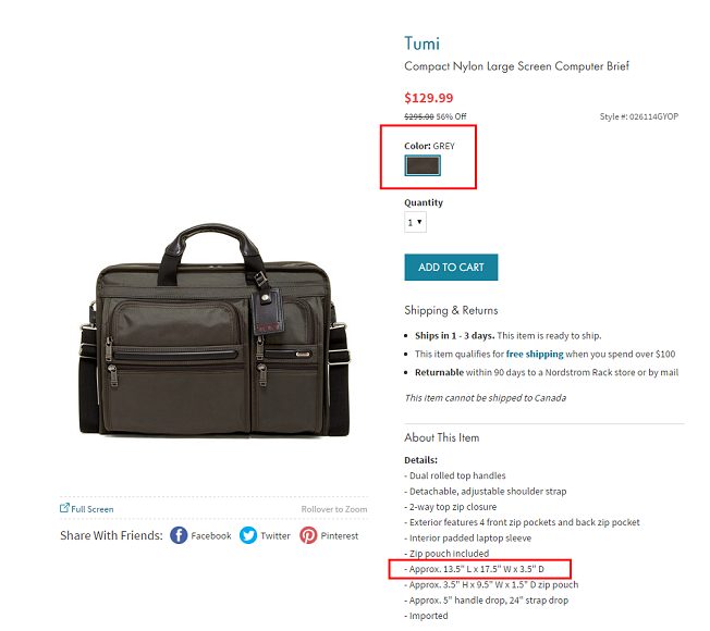 - 제품링크: https://www.nordstromrack.com/shop/product/1234646/tumi-compact-nylon-large-screen-computer-brief?color=GREY#