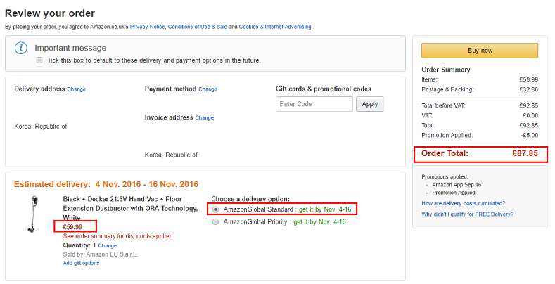 < #1. 우리나라배송지 변경, #2. 결제화폐 파운드 변경 후 계산>