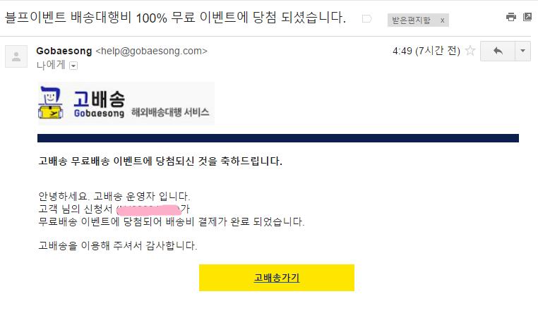 저번 주말에 이베이에서 주문한 렌즈, 무배이벤트 적용 받았어요