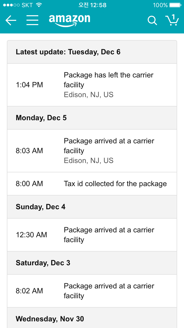 세관 규정에 의해서, 운송회사는 수신자의 (이부분이 빠졌네요)이 필요합니다. 결제를 완료할때, 수신자의 주소를 넣거나, "Your account"를 방문하셔서, "Address book" 메뉴 아래의 "Manage Shipping address"를 클릭하세요.