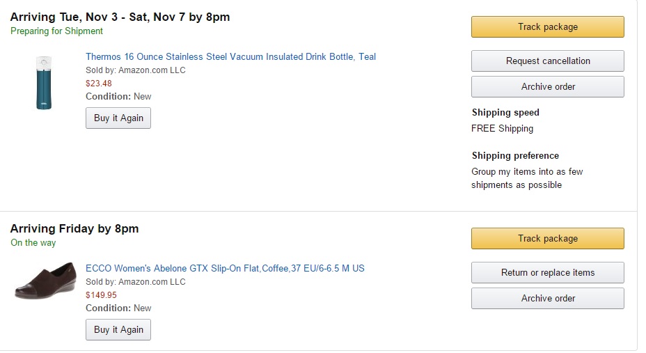 저는 리바이스 청바지 5개 시켰는 데, 5개 다 따로 배송...5개까지 무료로 취합해줘서 다행이었습니다만... | ||