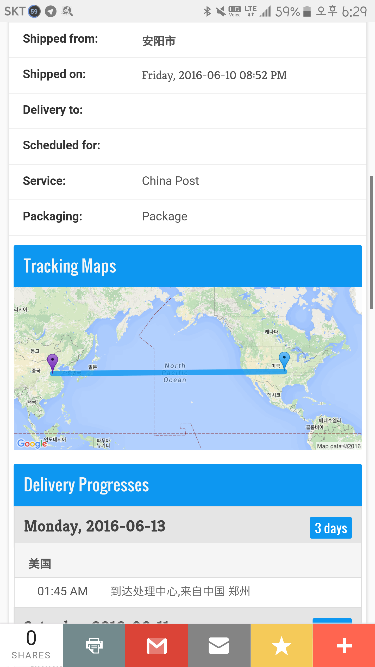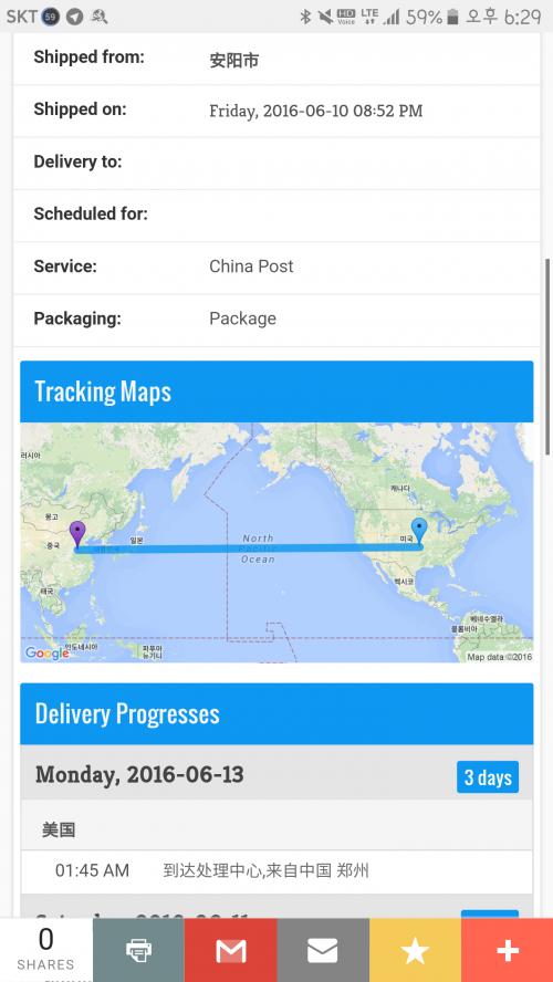 트래킹 넘버가 FTL로 시작하길래 이상해서 확인해보니 china에서 출발.... 25일후 도착예정...