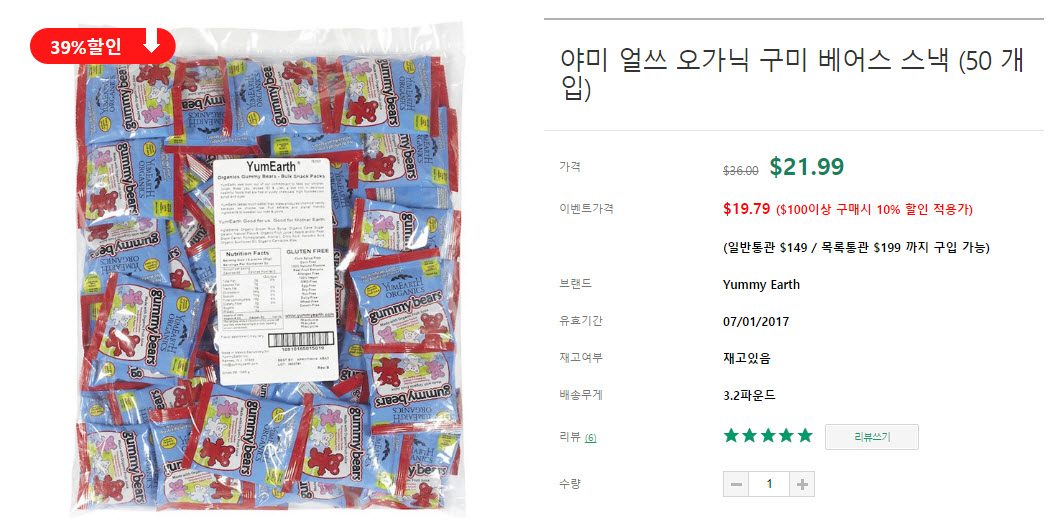 70불 이상 한국까지 무료배송 100불 이상 10% 할인으로 유혹해서