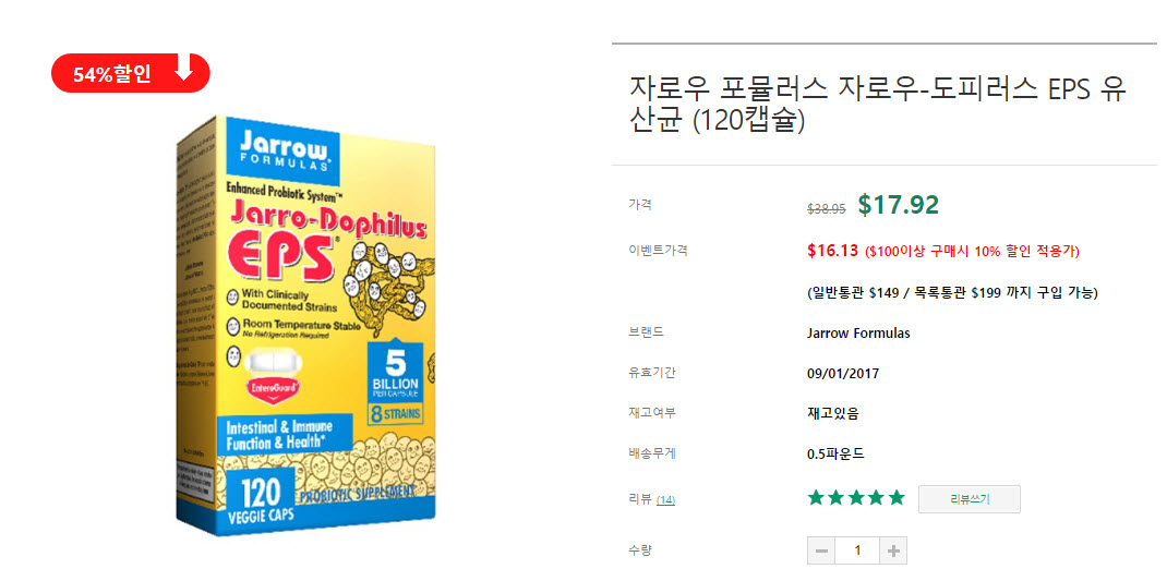 [비타트라] 자로우 포뮬러 유산균 120 캡슐 18달러 (70달러이상 한국직배 무료) > 해외포럼