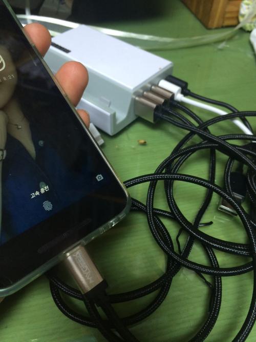 앵커 충전기에 꽂으니 고속충전되네요! 한 개는 안되구요 ㅋㅋㅋ 들고 다니는 베가 충전기는 고속충전이 안되네요