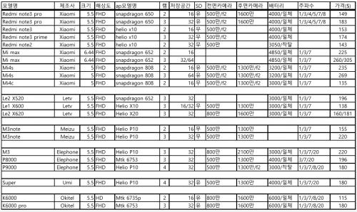정리한 폰들정도가 스냅800 이상급성능을 내면서 가격이 국내폰 중고가와 차이가 크지않아 메리트가 있겠더라구요.