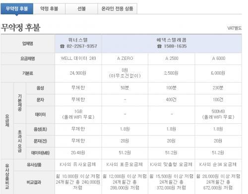 지금 에넥스 기본료 7000원에 100분/100건/100mb 사용중인데 빵원요금제도 좋아보이네요 ㅎㅎㅎㅎ | ||