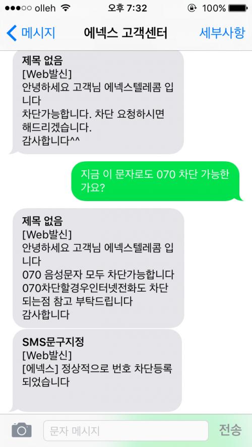 예전에 070 차단 가능한지 전화로 문의 했을 때는