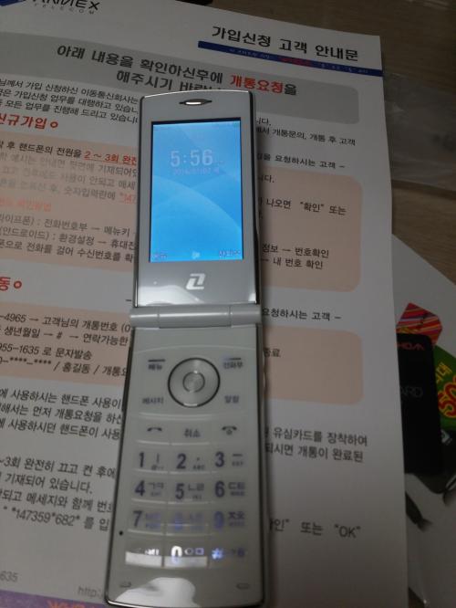 오전에 개통문자 msafer받고, 낮에 우체국택배로 받았네요. 화이트인데, 폰 자체는 피처폰 중에서도 하급으로 보입니다. 다행히 통화는 잘되네요. 올레닷컴에서 데이터차단 신청했구요.