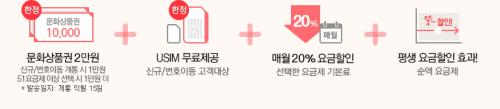 문화상품권은 최대 2만원(신규/시변시 1만원, 51요금 이상시 1만원) 인것같아요!!!