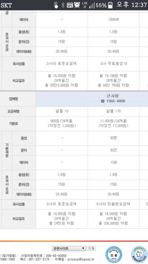 큰사람홈페이지에가도 해당요금제가보이지않더군요 우체국을통한가입만가능하다고해서 불편하게 꼭가야하나싶어서 상담원문의결과