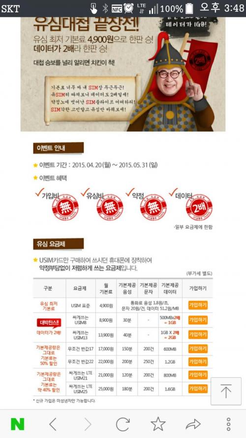 또좋은건.. 무약정.. 현재로썬 알뜰폰 중에 갑오브갑인듯..