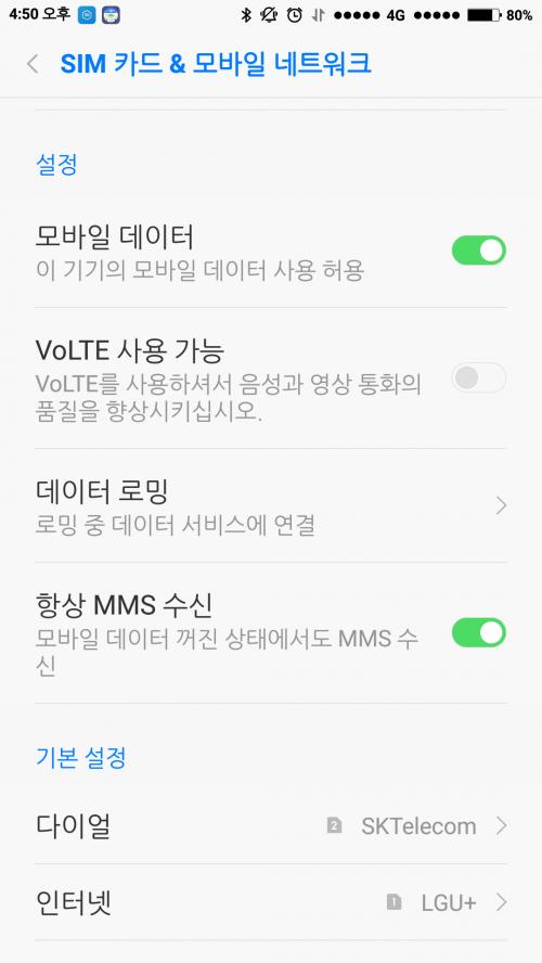 엘지유플러스 유심을 데이터용으로 쓰려면 꼭 lte only로 둬야 합니다.