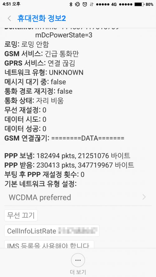 듀얼스탠바이의 경우 둘다 4g로는 사용불가하므로 2번유심은 WCDMA only나 Preferred로 설정해주었어요.