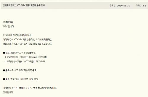 아마 그렇게 되지 않을까 싶어요. 이건 cgv측 공지고 kt는 아직 안나왔습니다. | ||