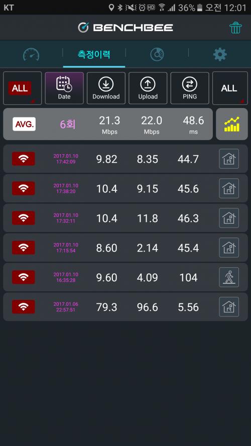 결론은 와이브로 브릿지와 속도는 거의 같네요.