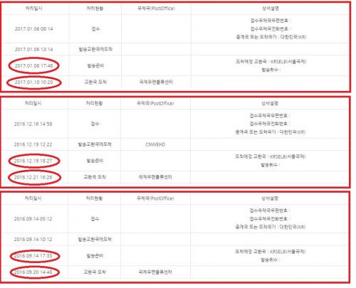특별한일 없으면 두번째건처럼 발송준비에서 한국도착까지 2~3일이면 도착하는거 같습니다.