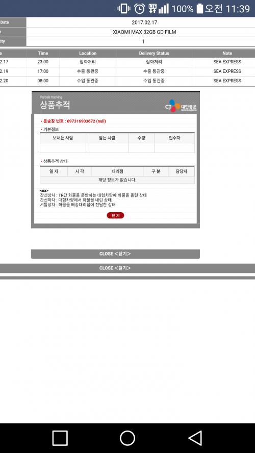 유니패스 들어가셔서 송장으로 검색해보세요~ | ||
