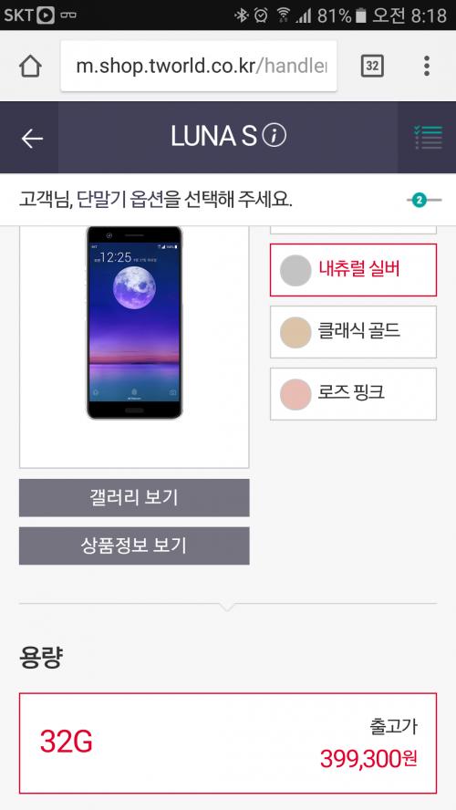 오늘 티 다이렉트몰에서 기기변경을 찾아보다가 루나 s 가 괜찮게 뜬거 같은데 여러분이 보시기엔 어떤가요? 저가 요금제 쓰시는분은 괜찮아 보이네요.