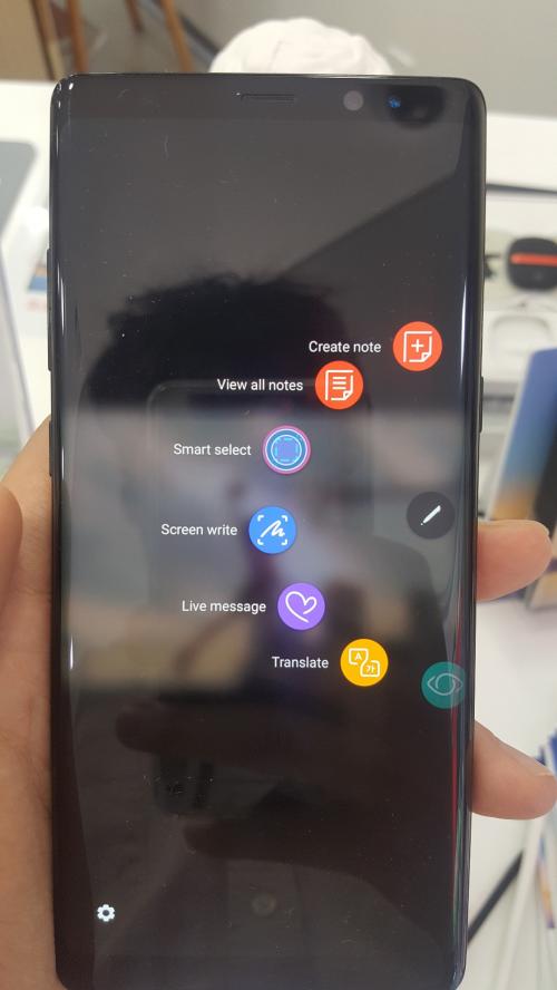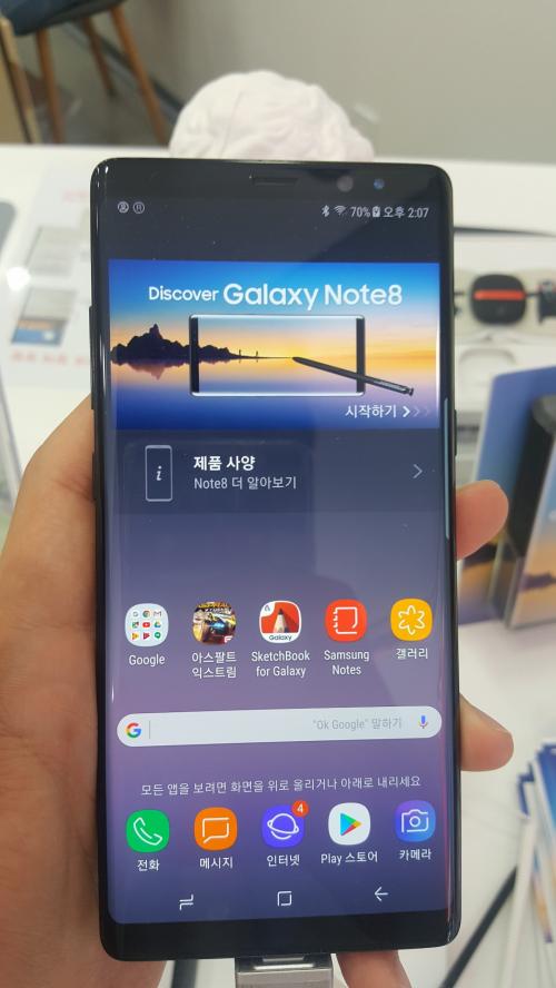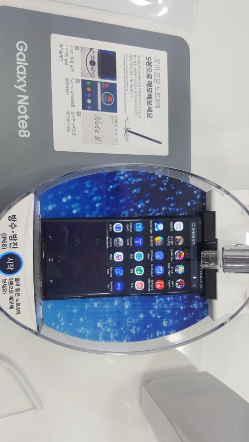 노트8 구경하고싶었는데 점심시간을 활용해 ㅋㅌ 매장 들렀다 왔습니다. 노트성애자라 그런지 굉장히 이쁘더라구요 지금 5사용중인데 5보다는 얄쌍한 느낌이었습니다. 배경화면에 노트8 새로운기능 체험해볼 수 있게 해놨구요 물 뭍은 화면에 노트펜으로 써볼 수 있는 방수 체험 도 해볼 수 있었습니다. 특히 라이브 메세지라든지 꺼진 화면 메모 같은 펜 기능이 추가되어서 마음에 들었습니다.