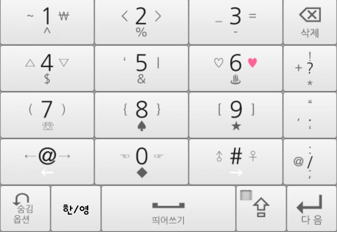 대부분 일반적으로 쓰는 기호가 다 저 화면에 있어서, 숫자 입력을 위해 키패드를 변경한다거나 꾹 누르고 기다릴 필요가 없습니다