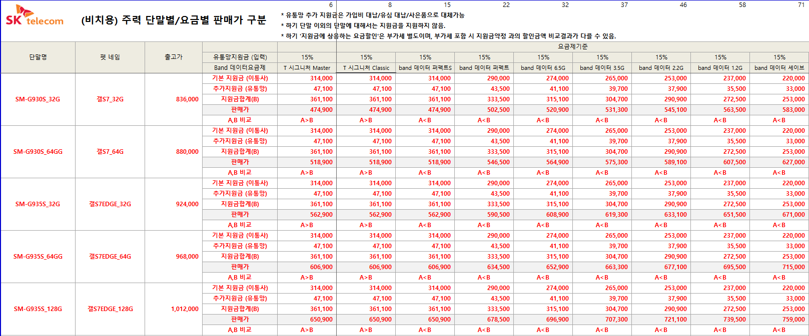 SK텔레콤 1/31 공시 지원금 변경모델 안내 입니다. > 휴대폰포럼