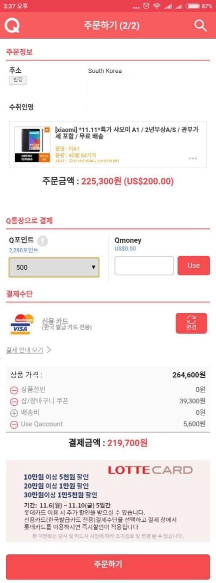 가격도 쿠폰할인 + 롯데카드 할인 하니까
