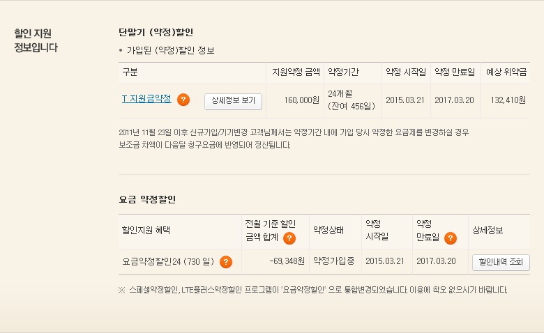 선택 약정 가입한 날짜에 해당하는 위약금이 소액 나온다고 하네요