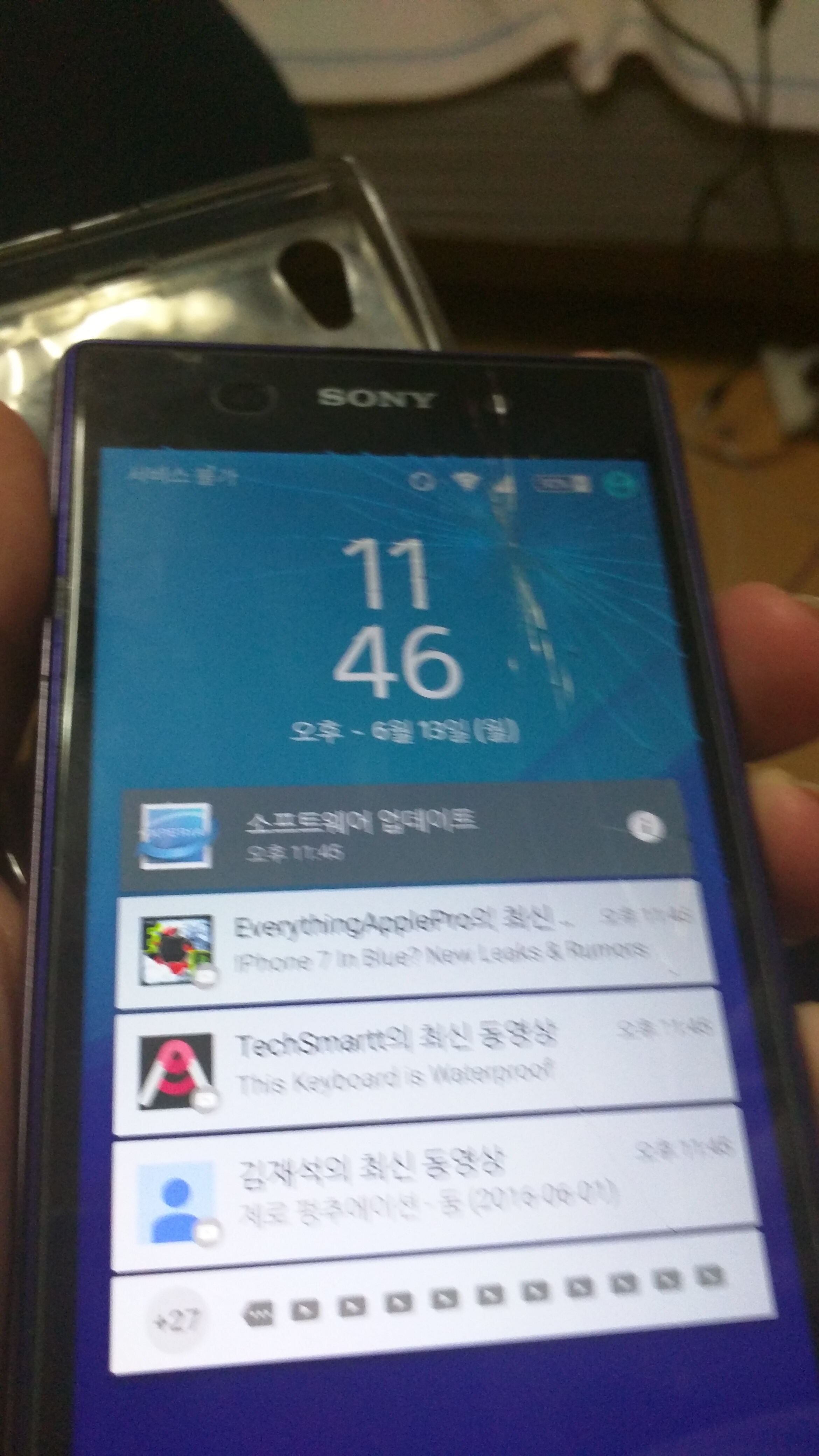 행거에서 옷을 꺼내다 떨어트린 옷걸이가 폰을 찍어버렸네요.. ㅠ