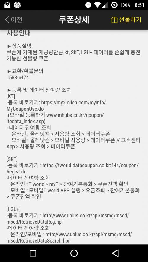 sk lg kt 통합 데이터 쿠폰 100mb 나눔합니다! > 휴대폰포럼