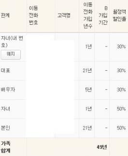 아버지 혼자 42년 5년짜리 제회선 어머니로 명의변경하고 제회선 온가족으로 넣고 아주 꽉꽉 꾸겨서넣었네요 ㅎㅎㅎ 인터넷없이 핸드폰회선만 가지고 만들어진 ㄷㄷㄷㄷ