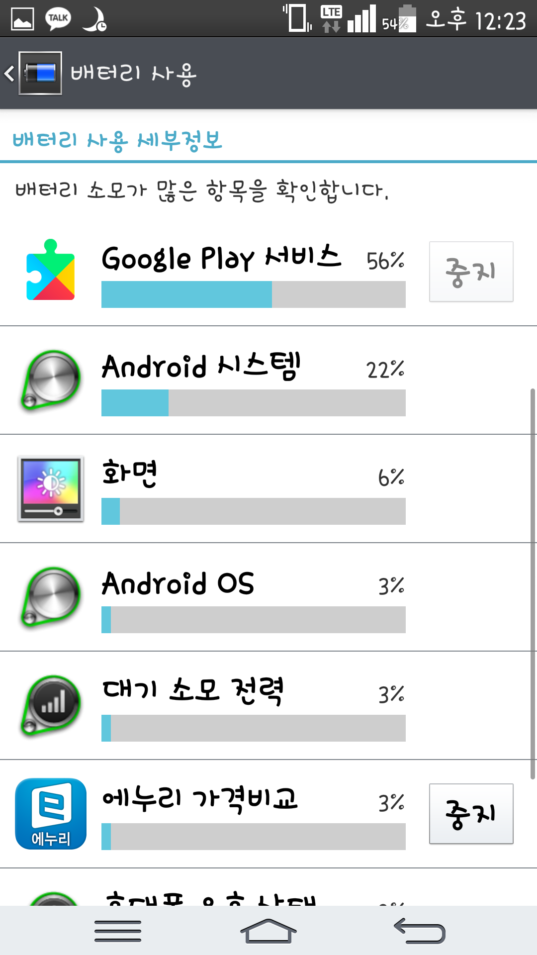 화면에 답이 있네요 밧데리 많이 먹는 저 두개가 문제네요 |