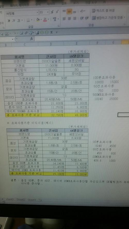 추가2) 큰사람은 lte, sk텔링크는 3g입니다
