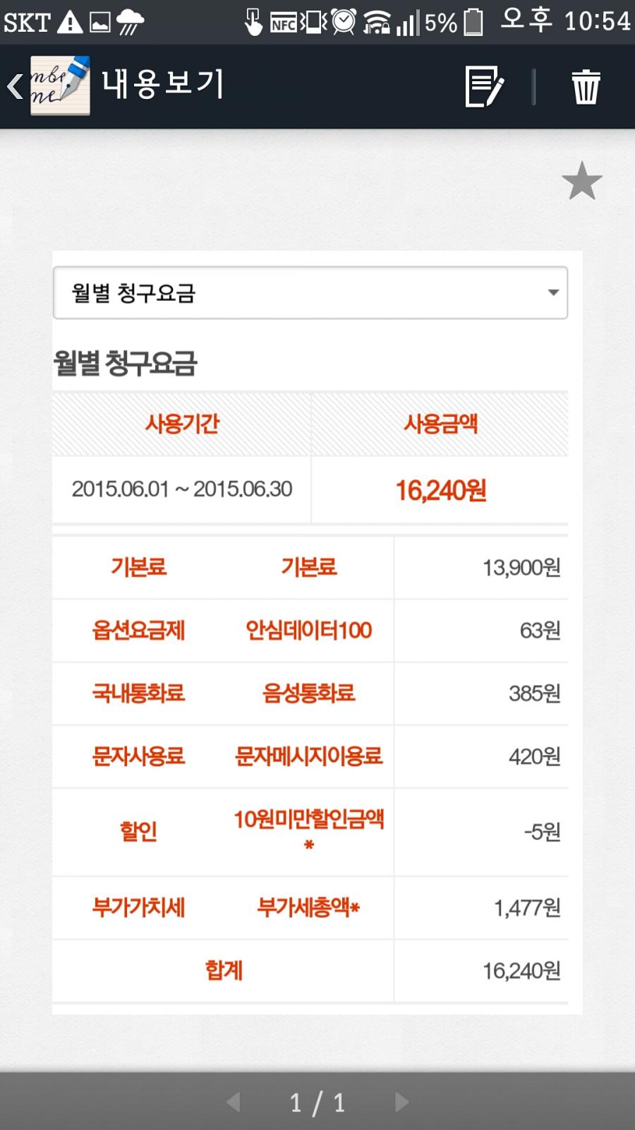 원래가격인 13900원에 부가세 1390원하면 15290원,제휴카드 만원할인받고 5290원(아무것도오버안했을시)이나 6000원대요금나왔으니 나름선방한것같네요