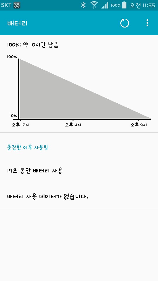 이상한게 처음 100% 충전하고 바로 배터리 들어가서 보면 사진처럼 약10시간 남음 이라고 나옵니다.