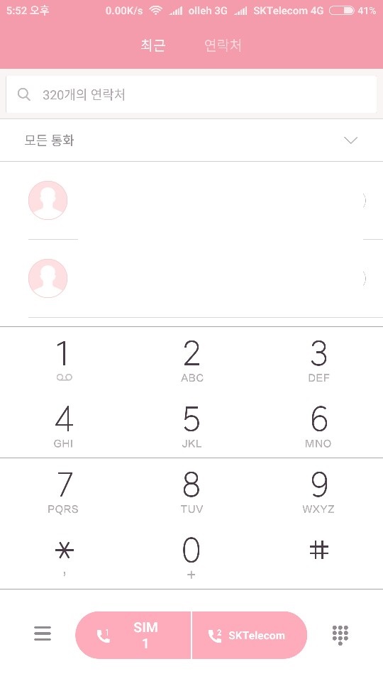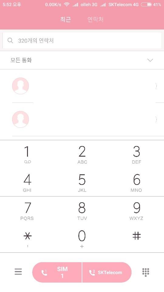 전화는 둘다 잘 오고, 전화 걸때는 아래에서 선택을 하게 됩니다.