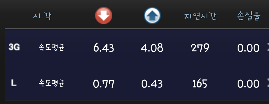 측정은 3G모드와 LTE우선모드로 각각 1회씩 총 2회 진행했습니다.