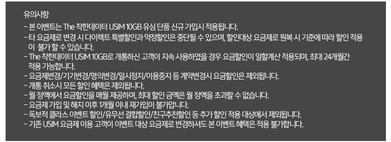 (영상/부가통화 200분, 데이터 한달 10기가 제공. 다 소진시 하루에 2기가씩 추가 제공. 2기가도 소진시 3mbps으로 무제한)