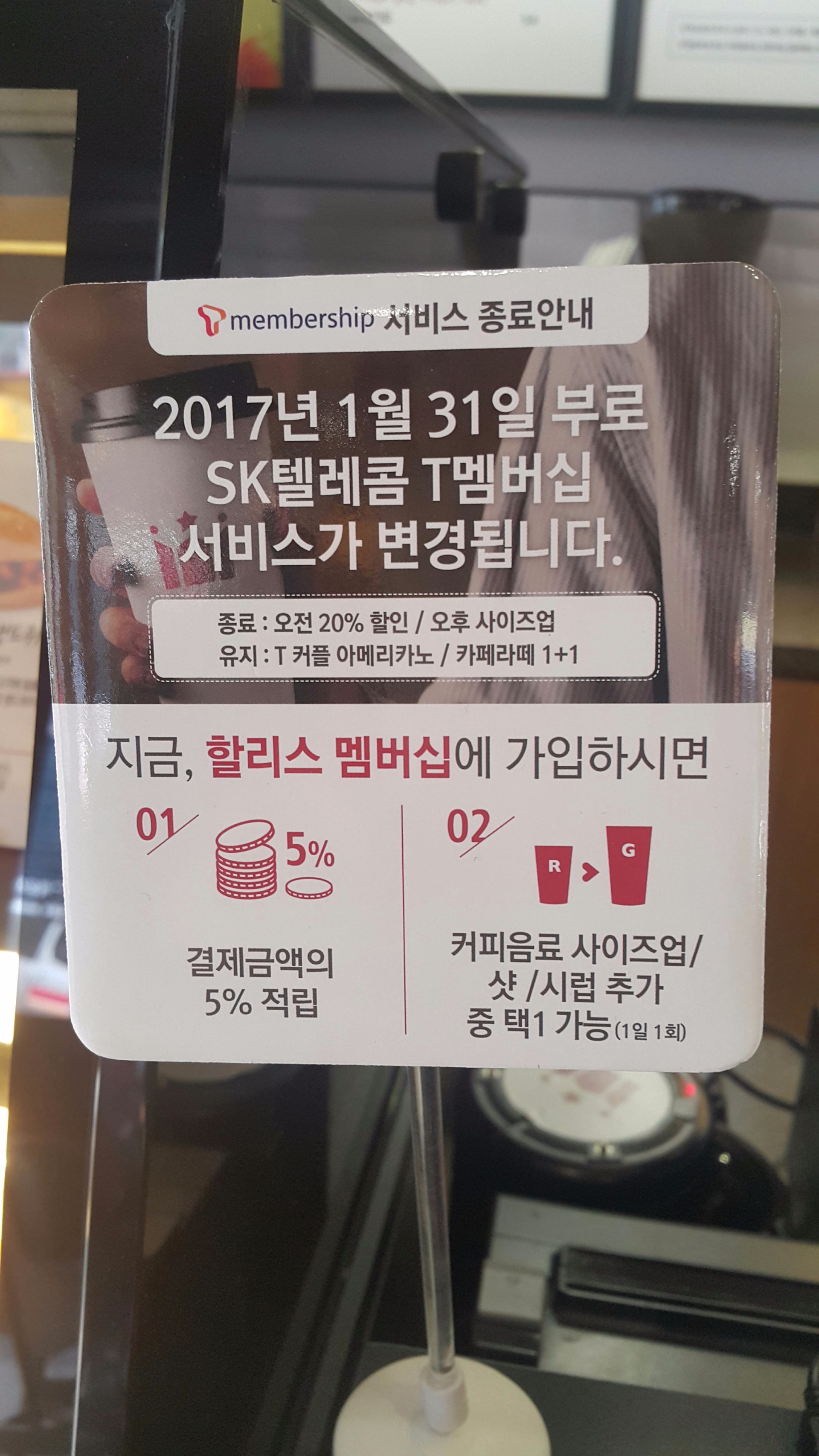 저도 1월에 할리스 갈 일 있어서 티멤버십 내밀었더니 1월부턴 안된다고...