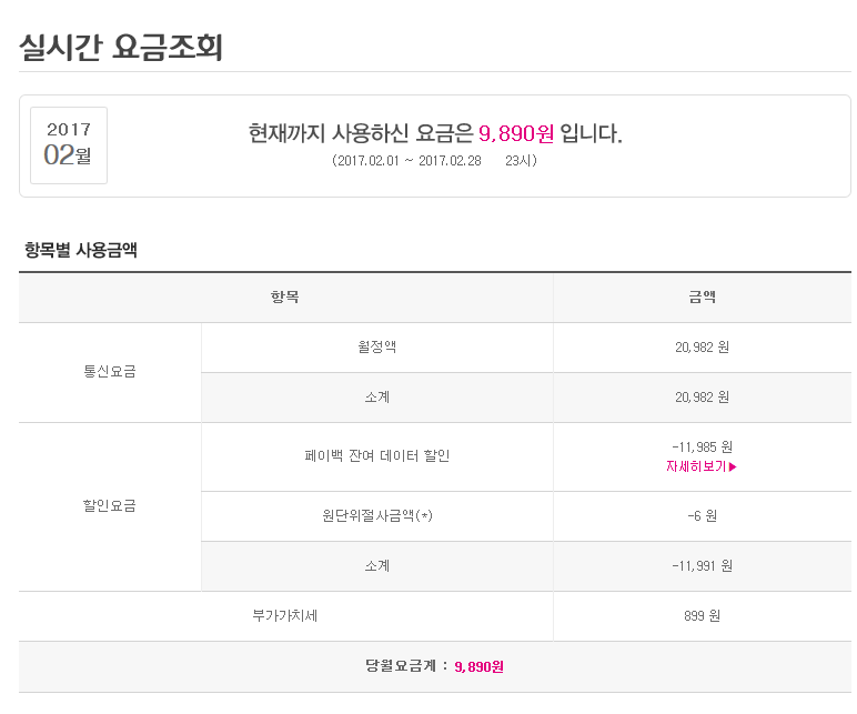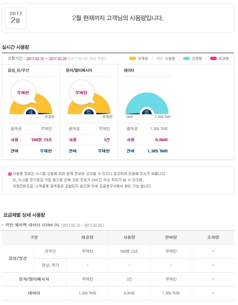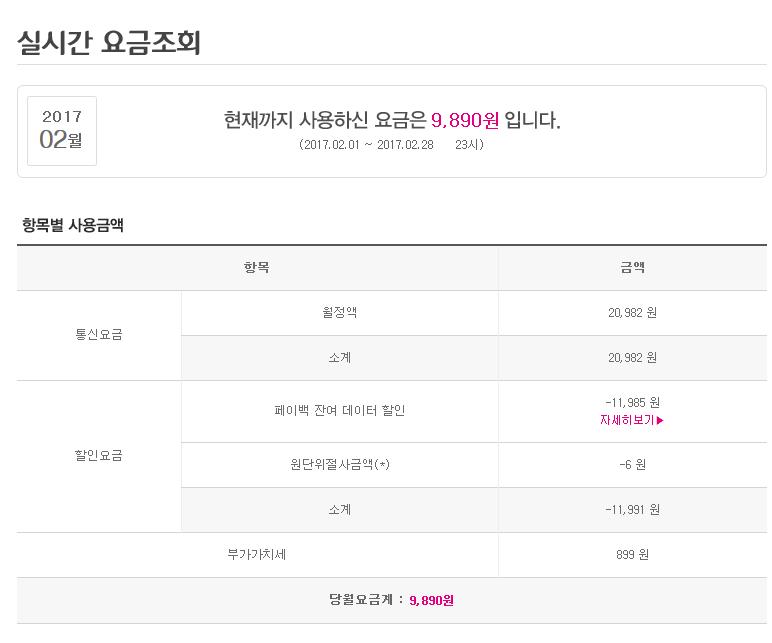 요금제 : 착한데이터 페이백 2GB