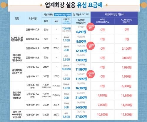 kt엠모에서 국민카드로 하면 싸다고 해서 실용USIM 2.9로 가입했어요