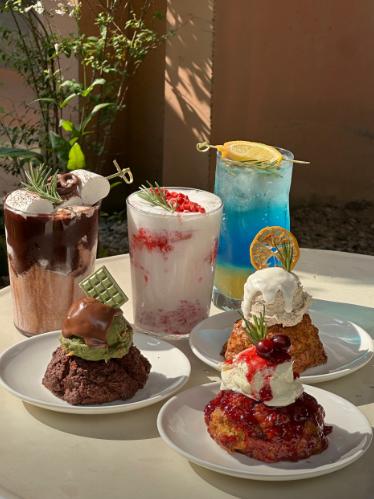 식물과 자연 요소들이 곳곳에 배치되어 있어 마치 작은 온실 정원 카페에 온 듯한이곳은