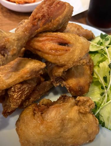 갓 튀겨낸 치킨 한 조각에 구수한 국수 한 그릇을 판매하는 '집인데요.