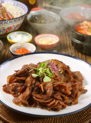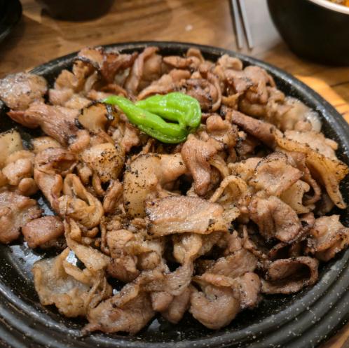 숯불 직화로 구워낸 풍부한 불향과 달짝지근한 양념이 조화된 돼지불백이 대표입니다.