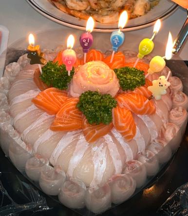 특히 일반적인 회 포장과 달리 **케이크 형태의 회 구성(회케익)**과 꽃처럼 연출된 접시회로 시각적인 만족도까지 함께 고려한 점이 큰 특징입니다.
