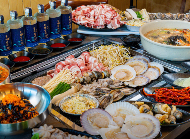 해산물 + 흑돼지 조합 – 전복, 가리비·쭈꾸미 등 해산물과 흑돼지 고기를 함께 즐길 수 있는 메뉴가 인기입니다.​