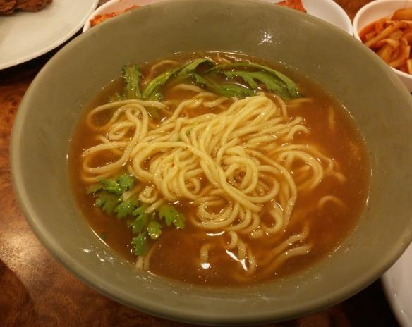 갓 튀겨낸 치킨 한 조각에 구수한 국수 한 그릇을 판매하는 '집인데요.