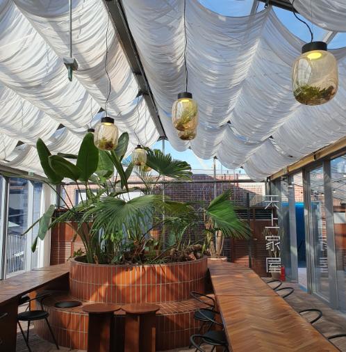 도심 속 보타니컬 루프탑 감성, 통유리 구조 + 하늘 느낌 인테리어가 어우러진 공간을 소개합니다.