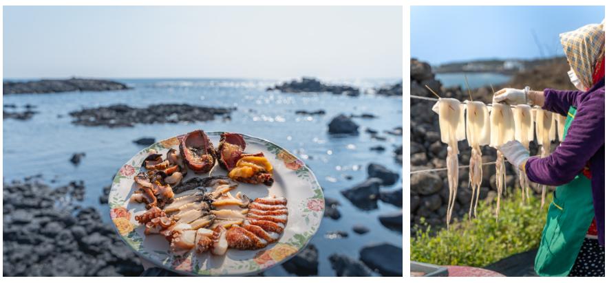 매일 바다에서 직접 채취한 해산물로 음식!